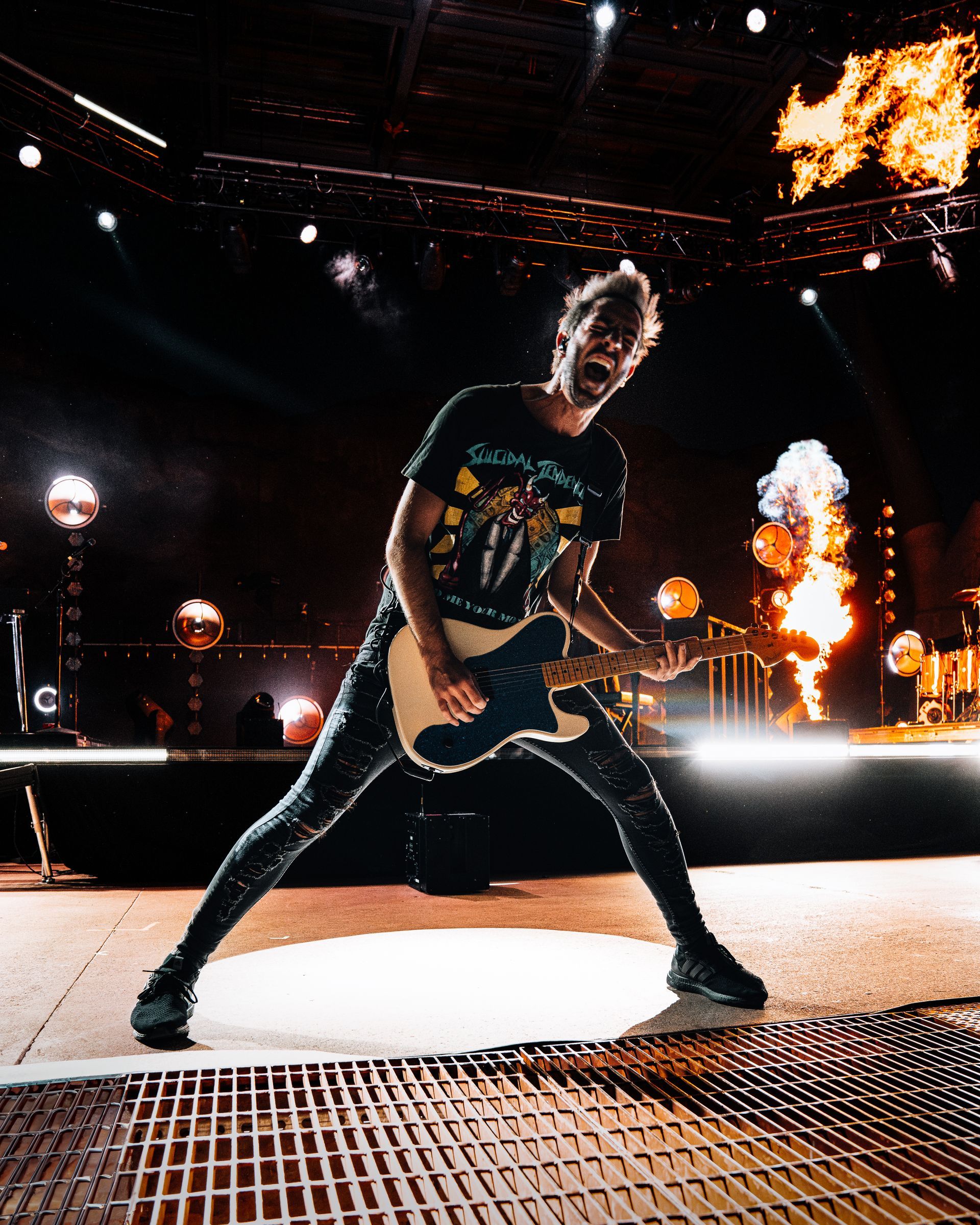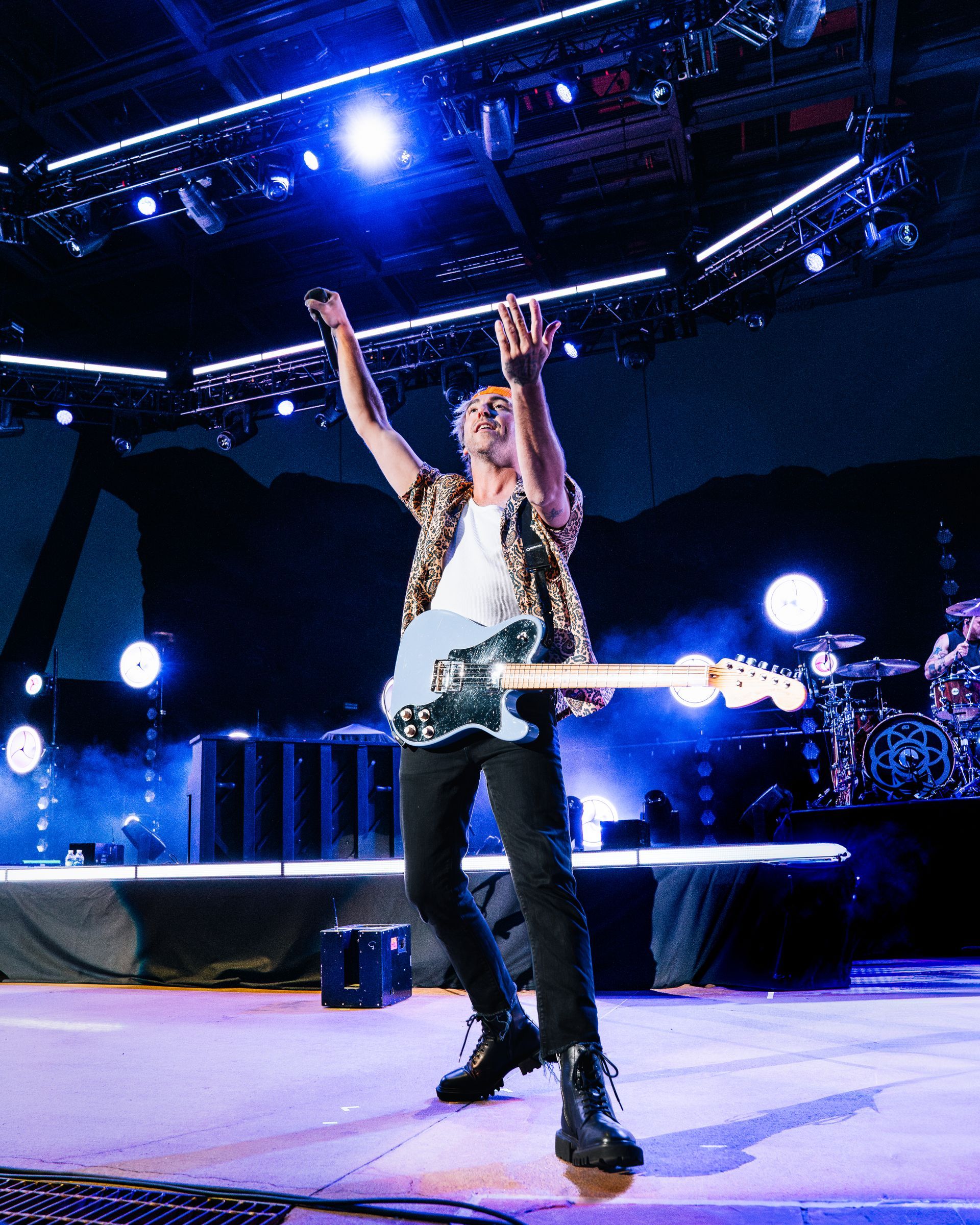 All Time Low took the stage with an electric energy that immediately captivated the capacity crowd. The natural acoustics of the iconic venue amplified the evening’s emotional intensity. Opening with their hit anthem “Tell Me I’m Alive,” they set the tone for an unforgettable night. The backdrop of the red rocks against the band’s fantastic lighting created a visually stunning atmosphere that perfectly complemented their high-octane performance.