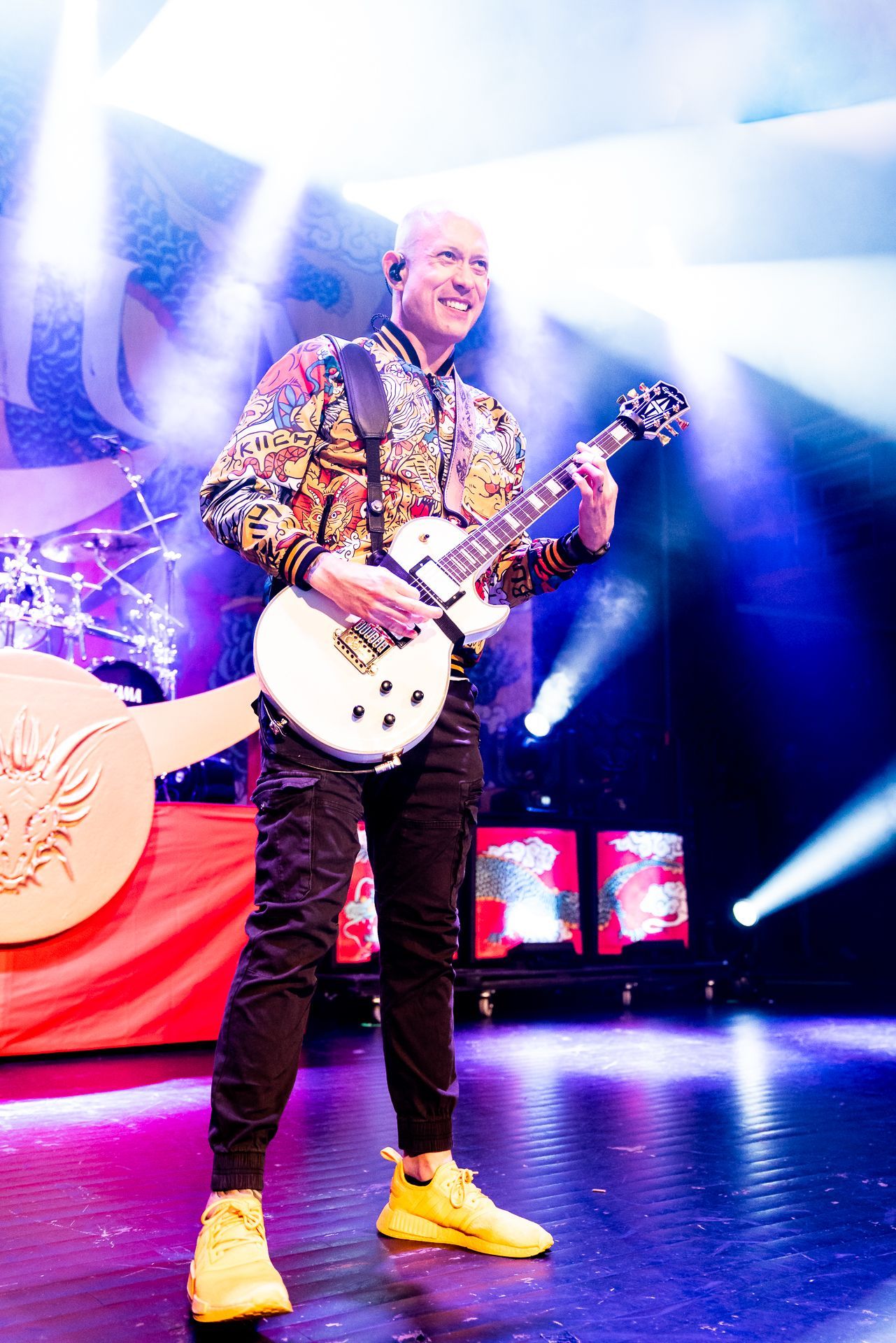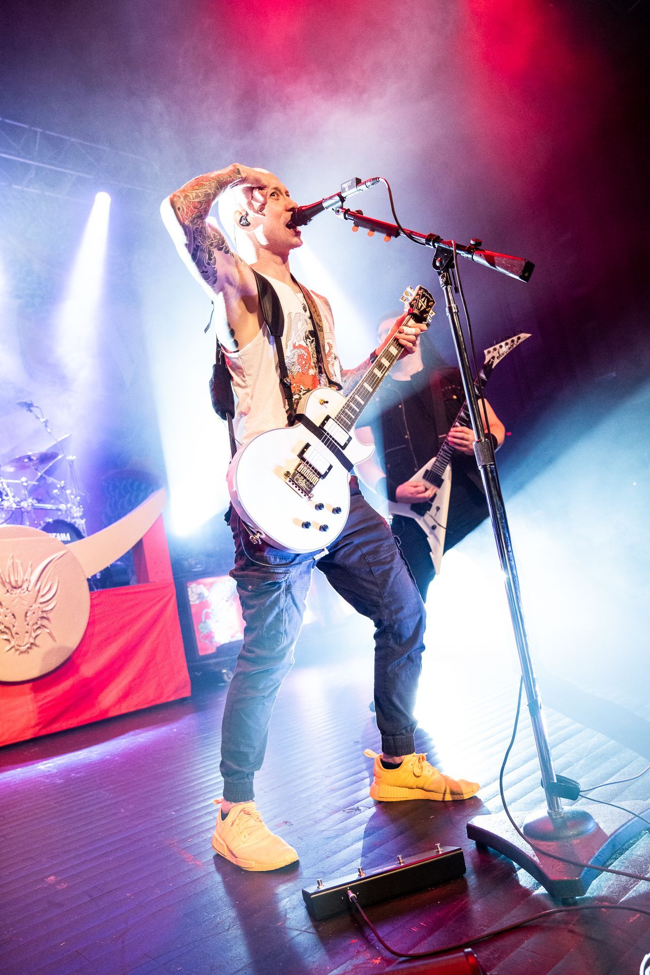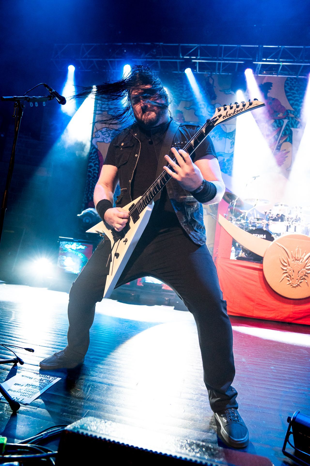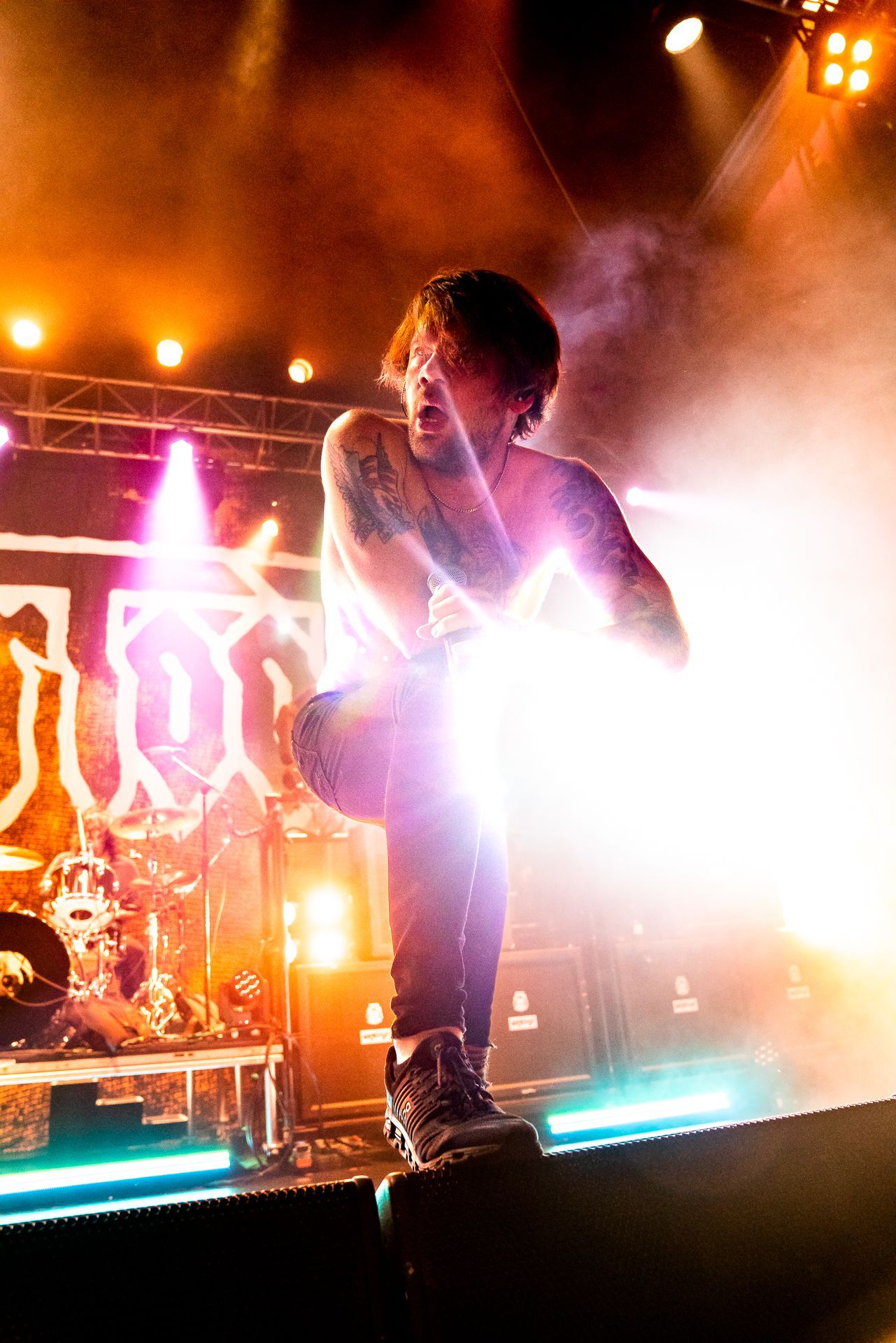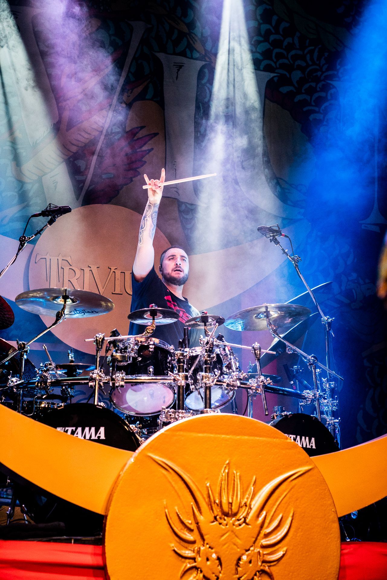 It may have been a Monday night but that didn't keep the crowd from staying packed in the venue for 9:50 arrival of Trivium. In fact, based on the hype level from the crowd you would have been safe assuming it was a Friday or Saturday as Pennsylvania showed why our state has a reputation for being one of the best markets in the country for rock and metal. Trivium burst onto the stage with a vengeance as their massive white curtain drop was whisked across the stage at the start of the set to reveal the band and a relentless amount of strobes that were perfectly timed to every guitar riff. Lead singer Matt Heafy nearly blended with the massive illustrative backdrop on stage as he wore a jacket of a similar pattern but he was easy to spot as he ran across the stage to various microphones while ripping on his guitar. Much like Beartooth before them Trivium delivered a technically stunning set of material that also spanned 60 minutes and covered the vast catalog of songs they have put out of the years. From the first riff to the last drum snare Trivium left it all on the stage and Stoudsburg left it all in the pit for them as well.