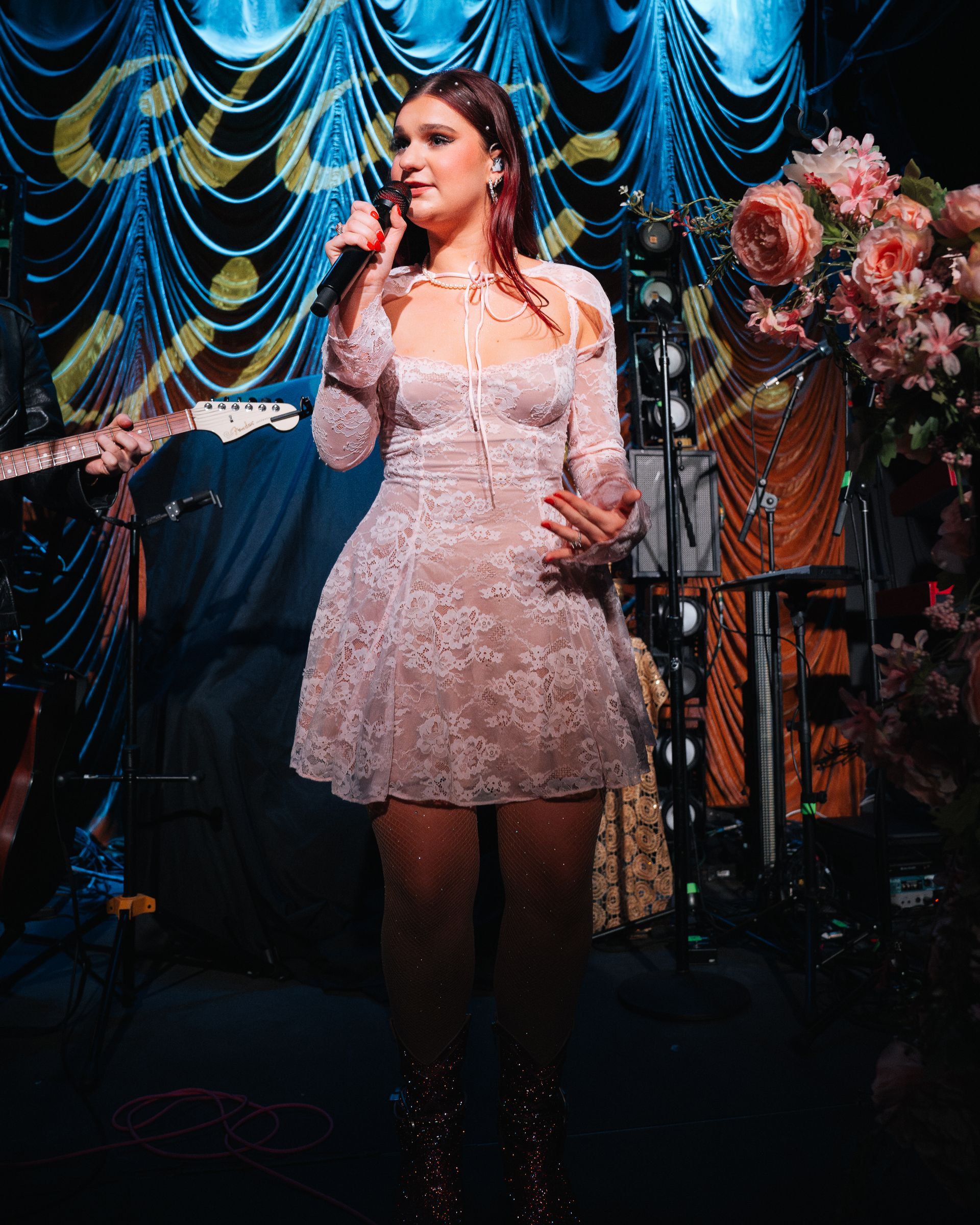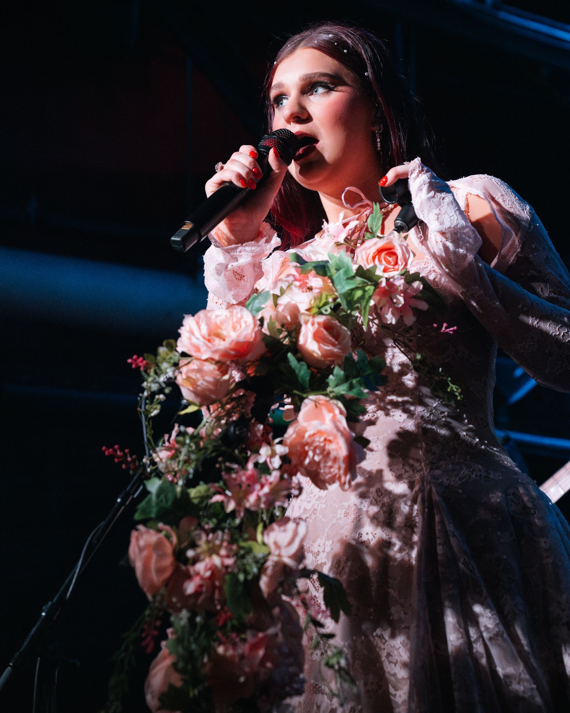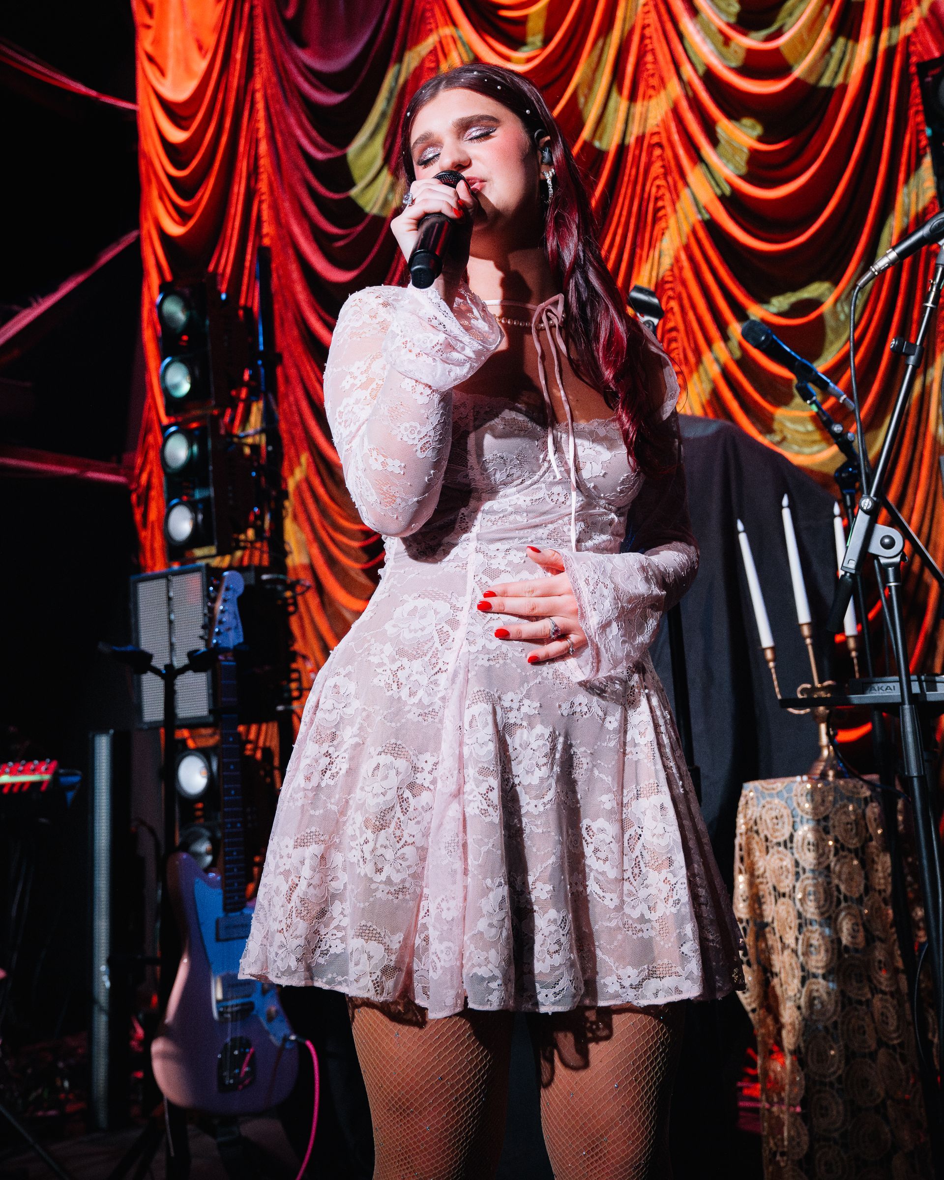 Wilder’s live vocals were nothing short of stunning: airy yet controlled, soft-spoken yet cutting through the venue like a well-thrown dagger. Her tone carried the emotional weight of every lyric, wrapping the room in an intimate haze that felt more like a confessional than a concert. One of the night’s standout moments came early, when she sat at the piano and made the stage her own, performing with the kind of poise that silenced even the loudest bar chatter—a rare feat at a packed club show in the Foundry. Her delivery was raw but polished, vulnerable without ever losing its edge and her confidence as a performer is well beyond her years.