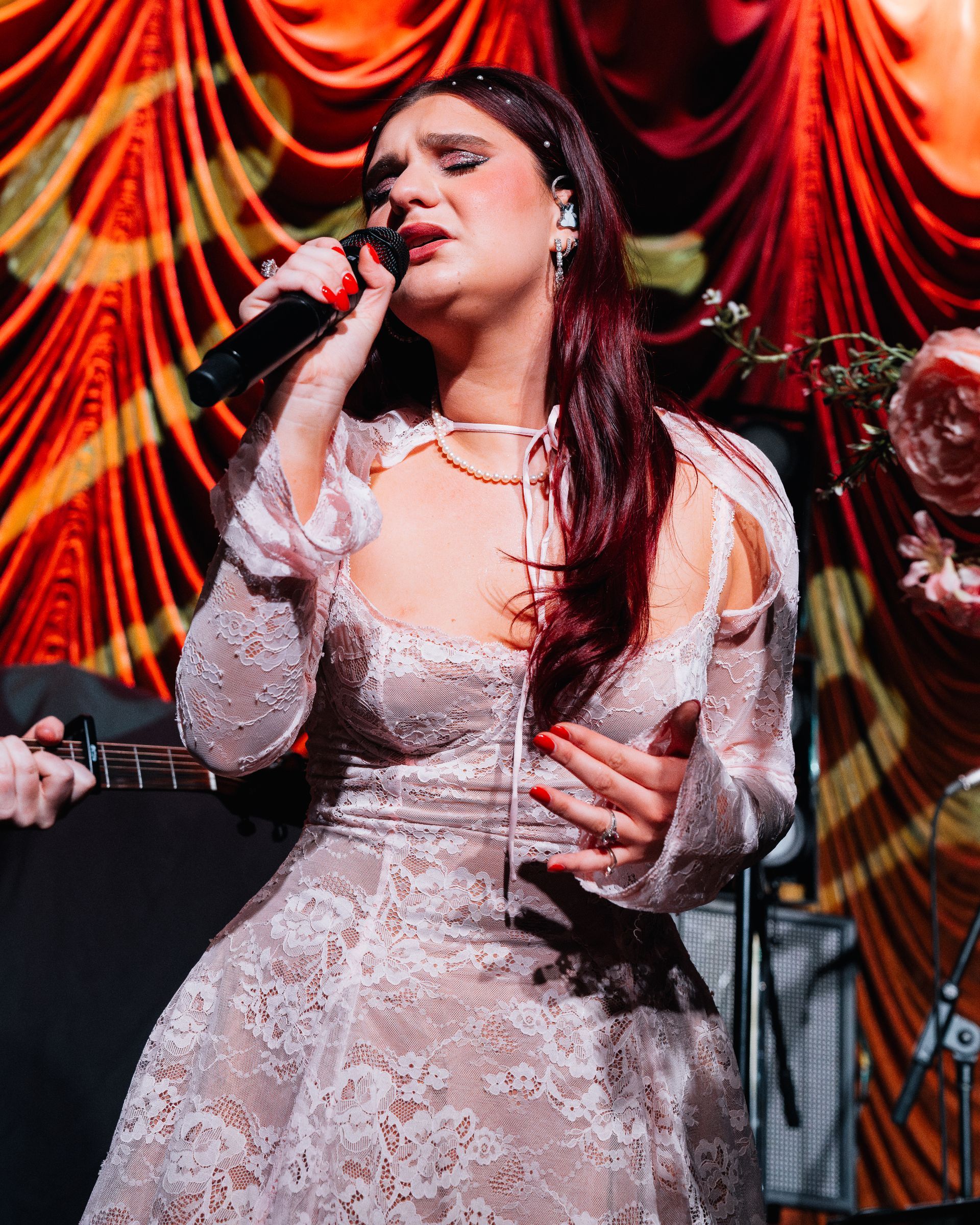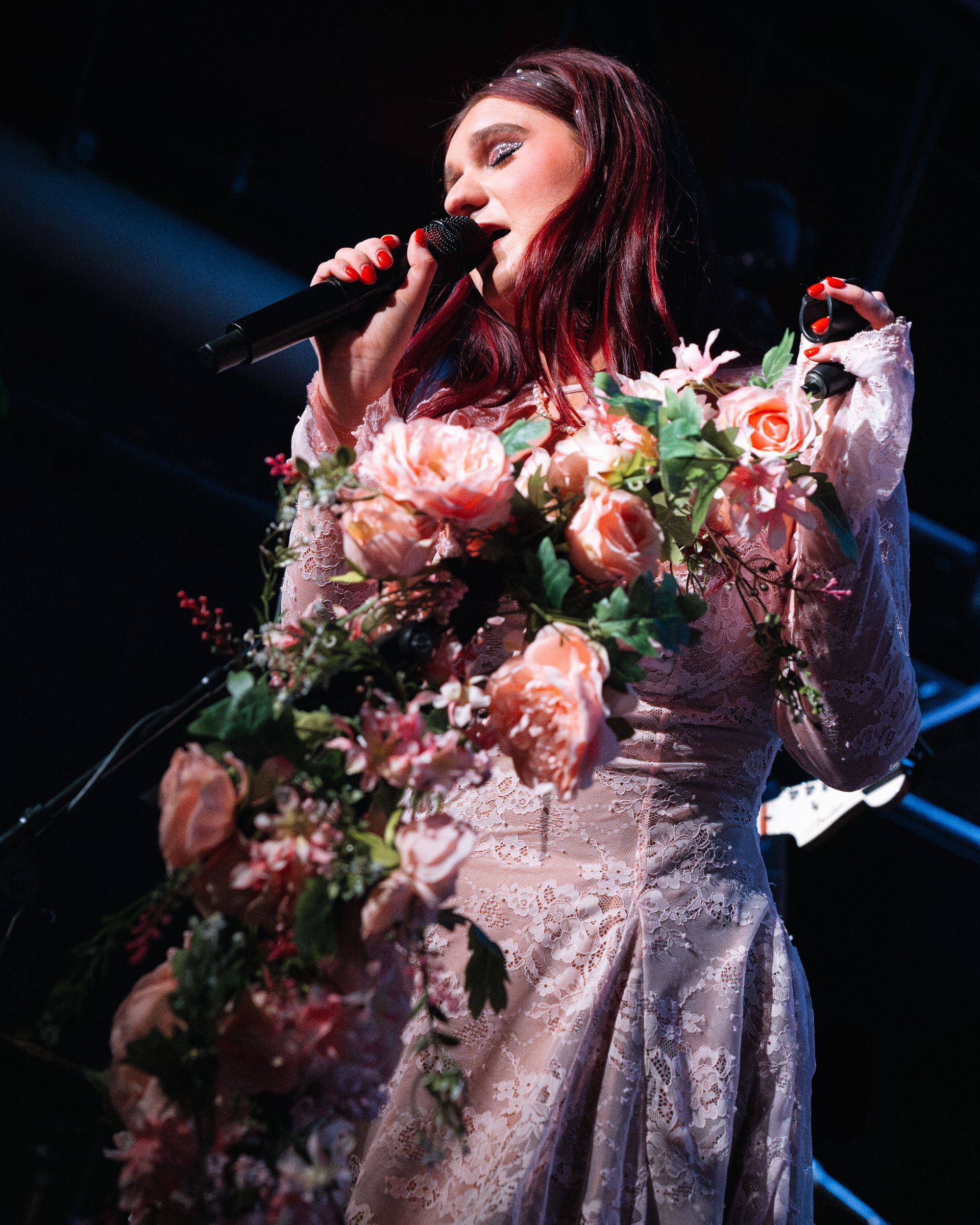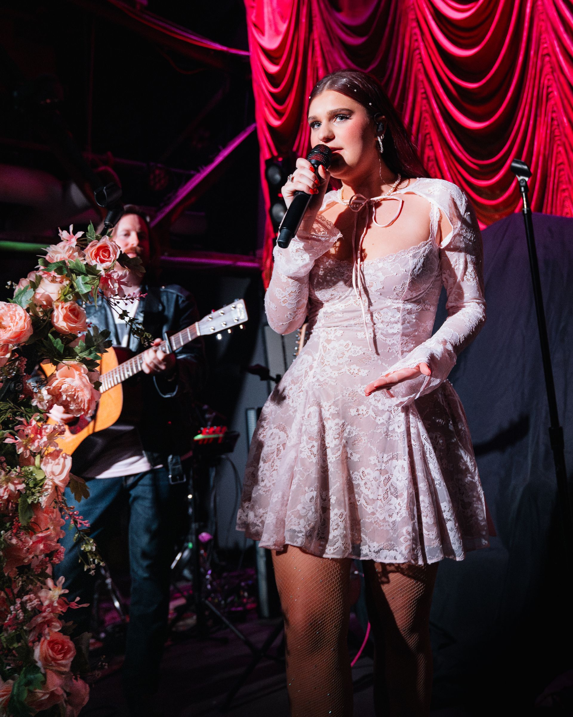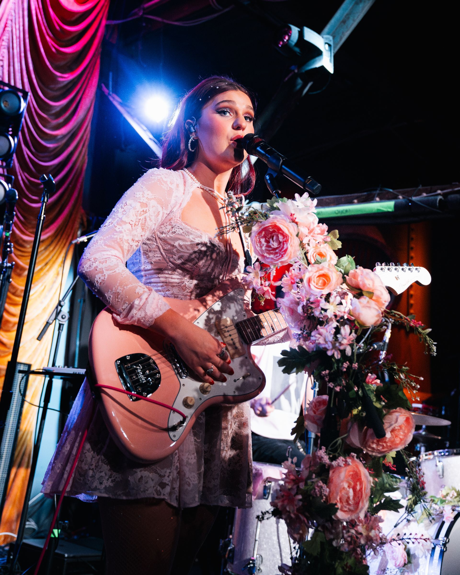 Wilder’s live vocals were nothing short of stunning: airy yet controlled, soft-spoken yet cutting through the venue like a well-thrown dagger. Her tone carried the emotional weight of every lyric, wrapping the room in an intimate haze that felt more like a confessional than a concert. One of the night’s standout moments came early, when she sat at the piano and made the stage her own, performing with the kind of poise that silenced even the loudest bar chatter—a rare feat at a packed club show in the Foundry. Her delivery was raw but polished, vulnerable without ever losing its edge and her confidence as a performer is well beyond her years.