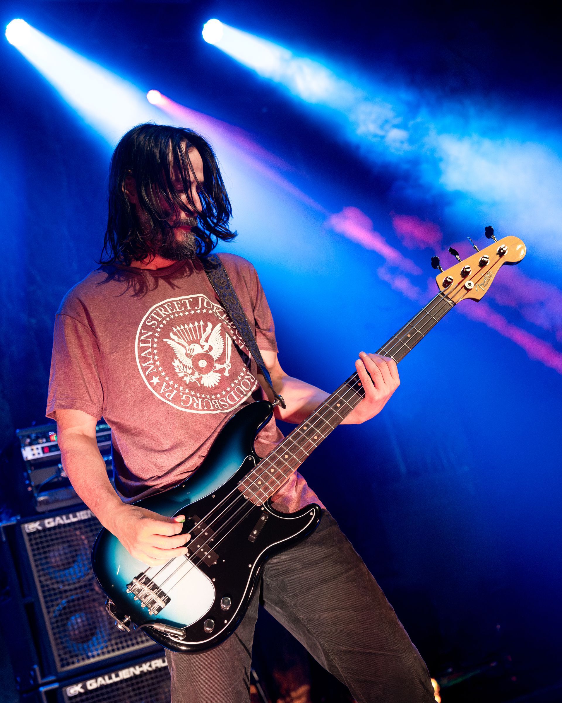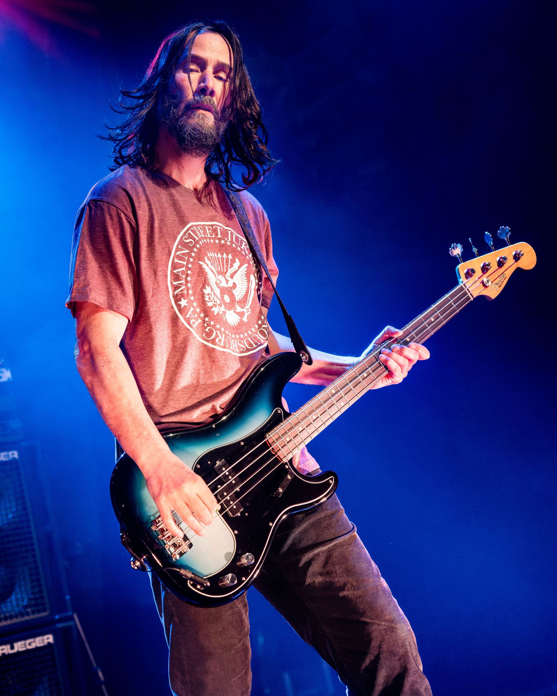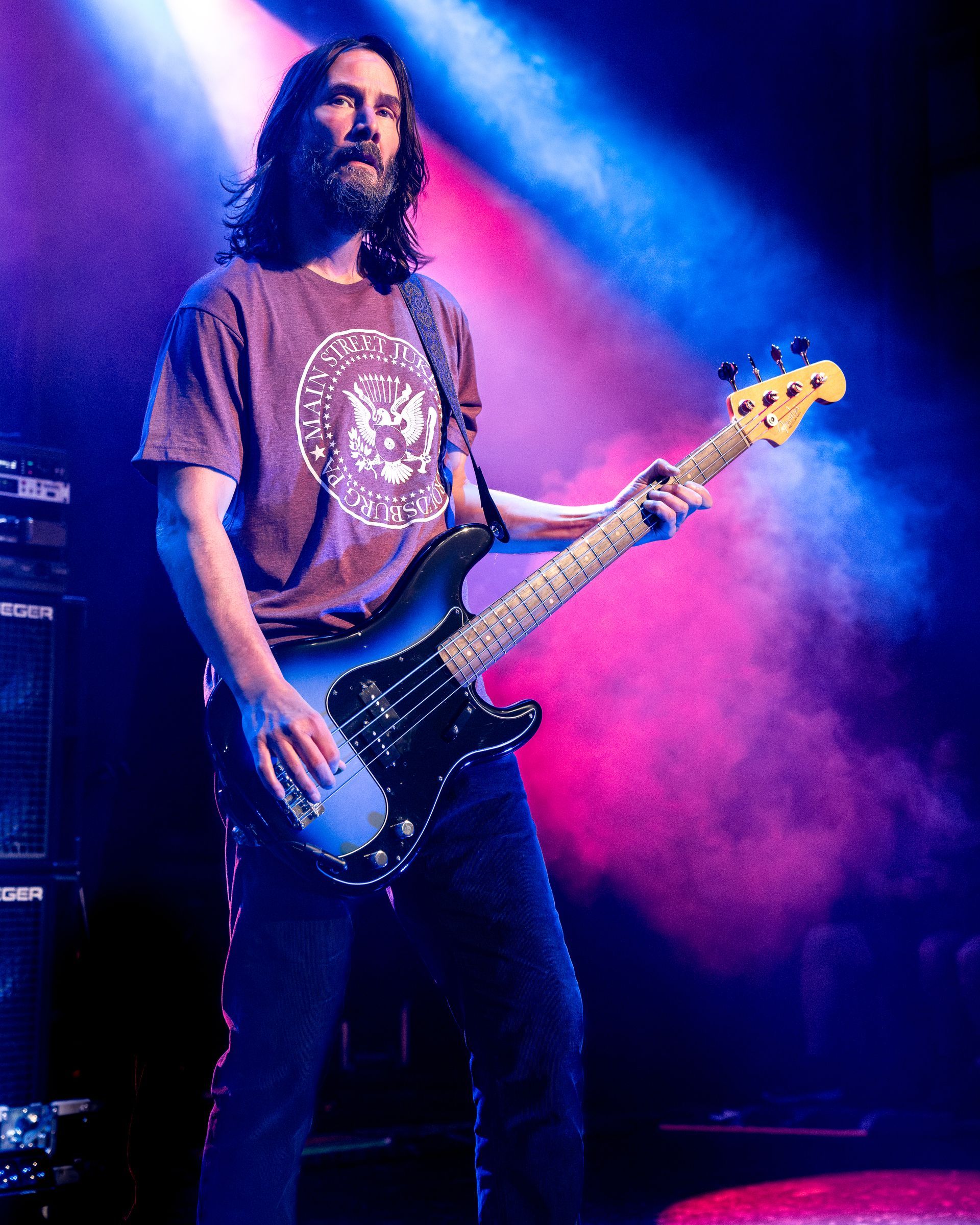 The rock trio consisting of movie superstar Keanu Reeves on bass, actor and drummer Robert Mailhouse behind the kit and Bret Domrose on guitar and vocals took the stage to a roaring ovation from the Stroudsburg crowd. Slowly but methodically the band took their places and quickly exchanged small smiles with each other as the lights around them began to burst to life. With a smirk on his face Reeves struck the first bass notes of "Blonde" as the band dove into a powerhouse and impressive 18 song setlist. While it has been a proverbial "minute" since Dogstar was on the road the band hasn't missed a day when it comes to the live performances with Reeves, Mailhouse and Domrose all still embodying the rockstar energy they had nearly two decades ago when they were fresh on the scene.