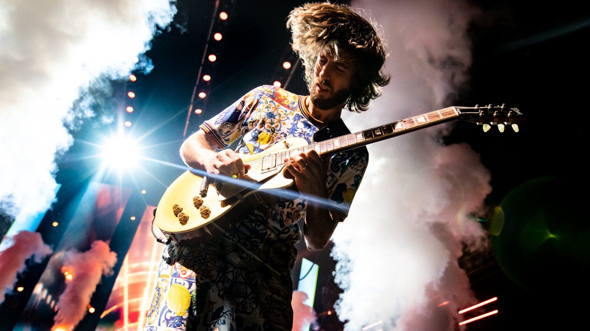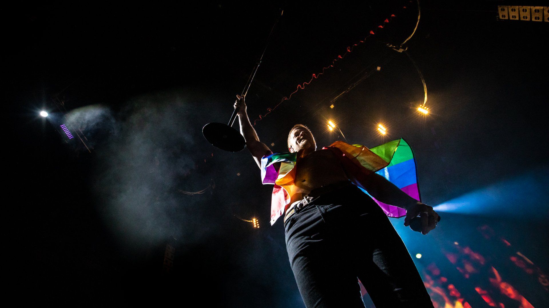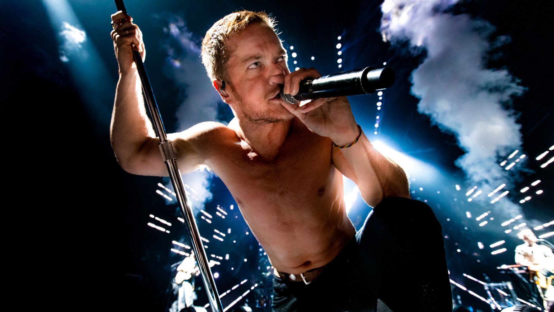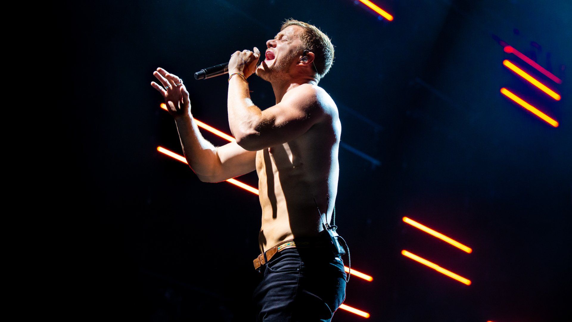 A brief but impactful message was delivered then as the crowd roared as Reynolds held the flag high above his head as he gave an strong message that asked for this concert to be a place of safety, inclusion and no judgement as fans were united by music. He kept the flag as he turned around to Wayne Sermon on guitar with a smile as they began a slow building version of ‘It’s Time’ to the approval of the crowd. Reynolds eventually went on to return the flag to it’s owner in the front of the crowded pit but the message remained the same all night long from the band and the show pressed on as Ben McKee on bass and Daniel Platzman on drums led the band into one of their more recent songs ‘Whatever It Takes.’
