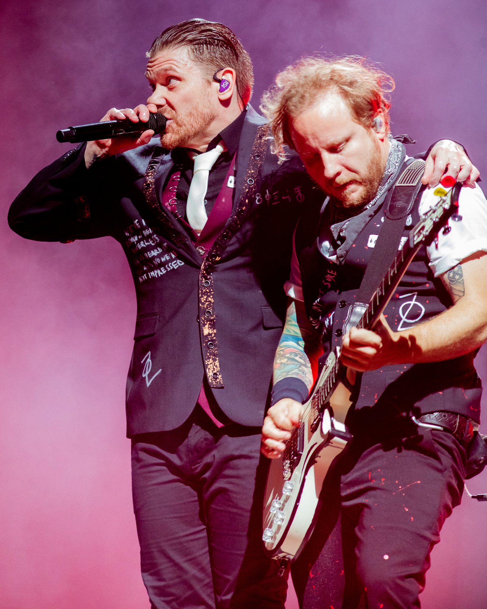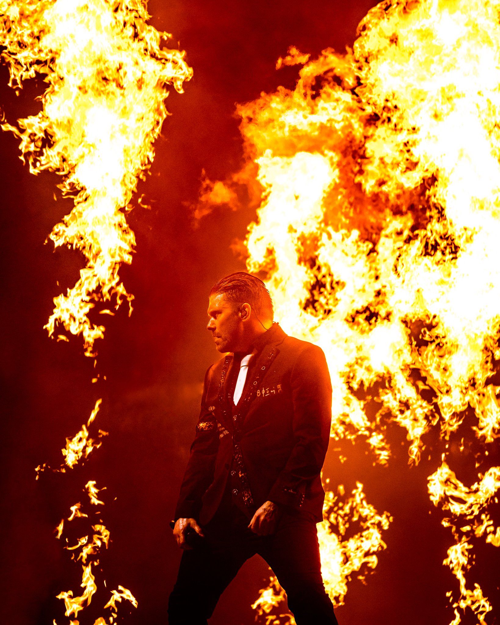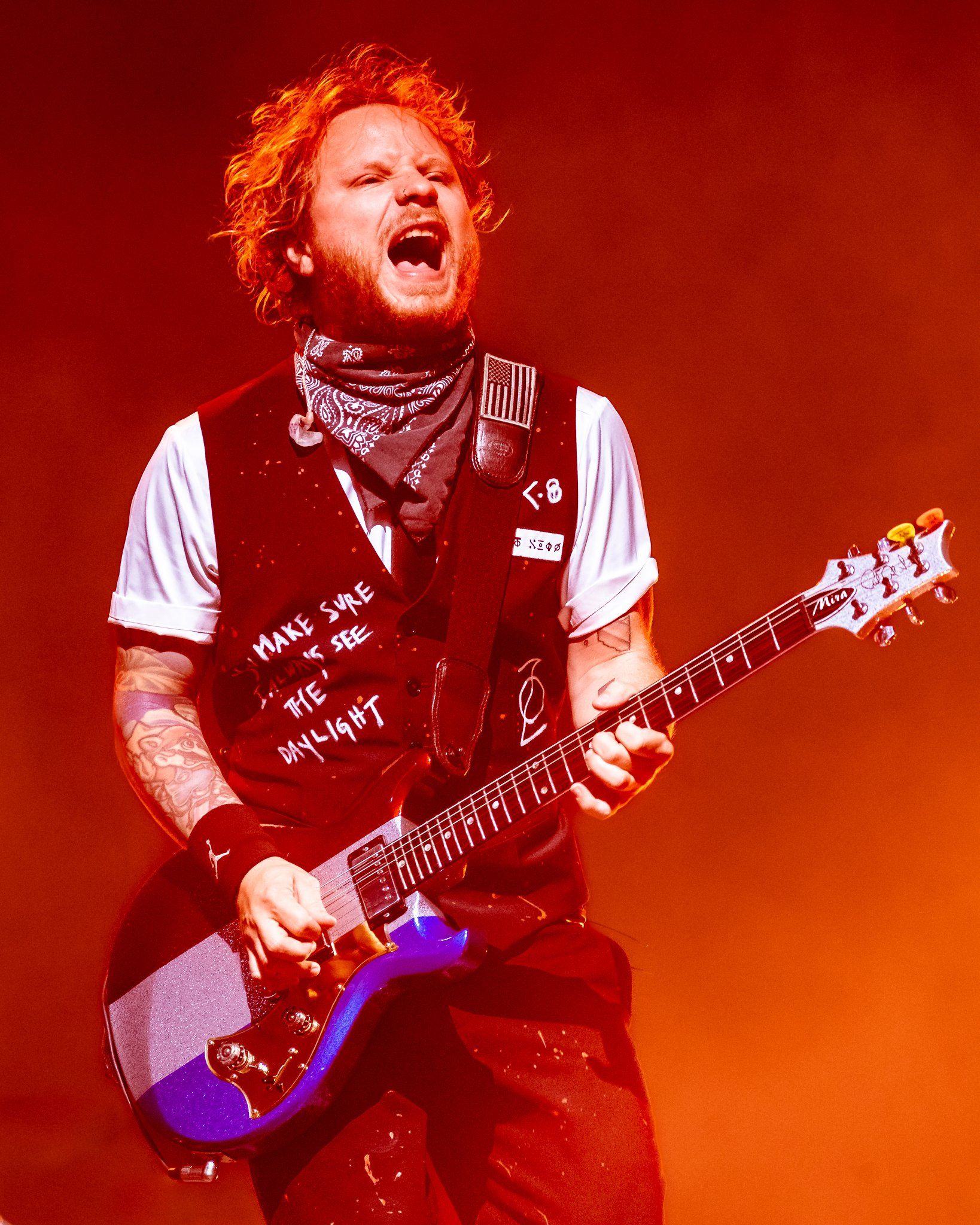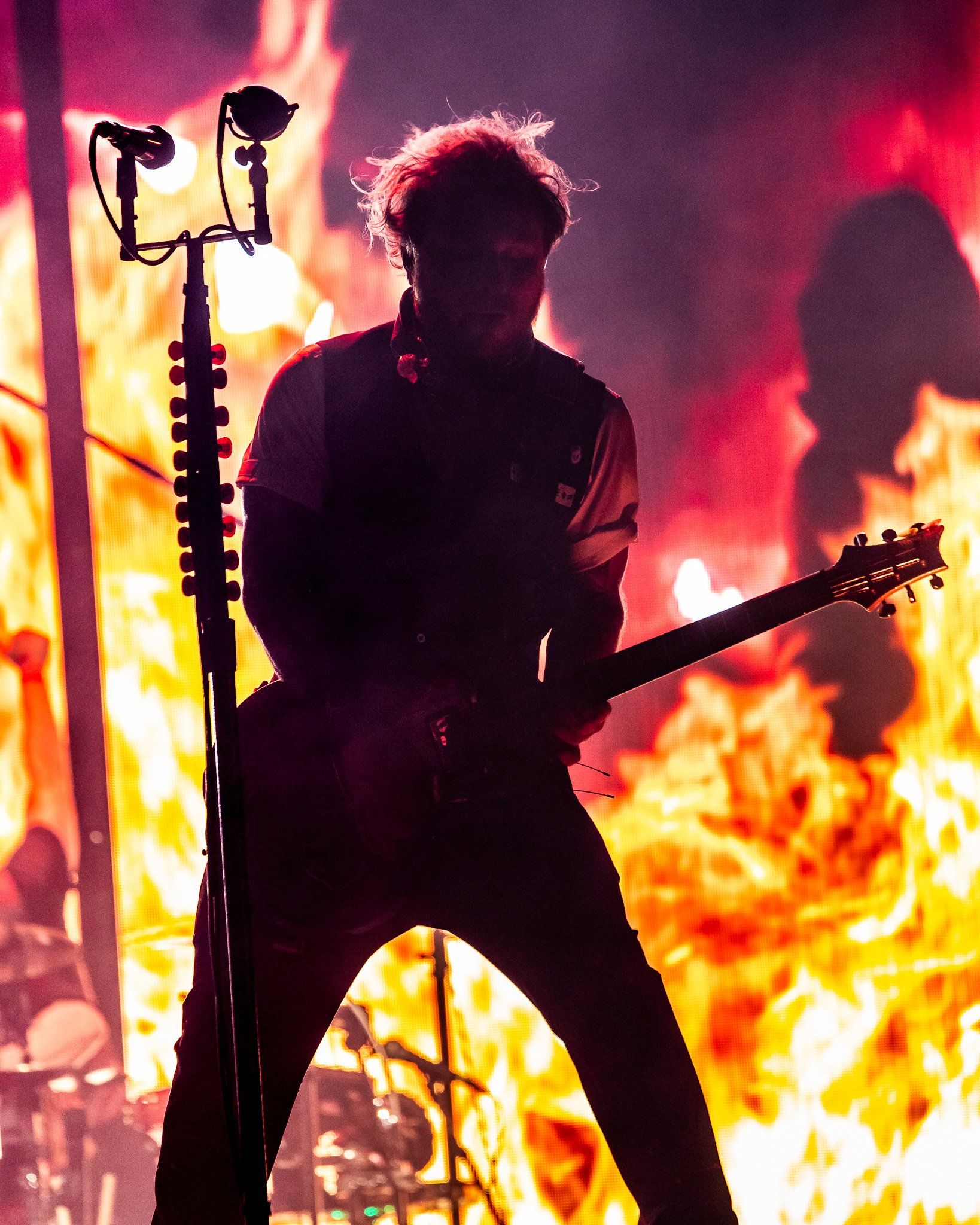 Shinedown delivered 18 songs for the massive crowd and each song had fans out of their seats singing on the top of their lungs. It truly is no secret how they became the best and most important rock band of the century - their artistry and connection with fans not only empowers their music but transforms their live performances as well. At this point in their career the band has entered "Pearl Jam" territory with some singles and amazing tracks not being able to make the set on every tour due to the ever growing catalog of commercial singles. The band does their best to accomodate all sectors of their fanbase however as numerous fan favorites and stellar deep cuts were crafted into another perfect setlist from Shinedown including a rare performance of "The Crow in the Butterfly." During the set the band did a touching tribute to the victims of 9/11 that included a moment of silence before the band performed "Better Man" with special guest Jelly Roll on the stage. Behind them a massive depiction of the Twin Towers was rendered across and American flag as the band sang along.