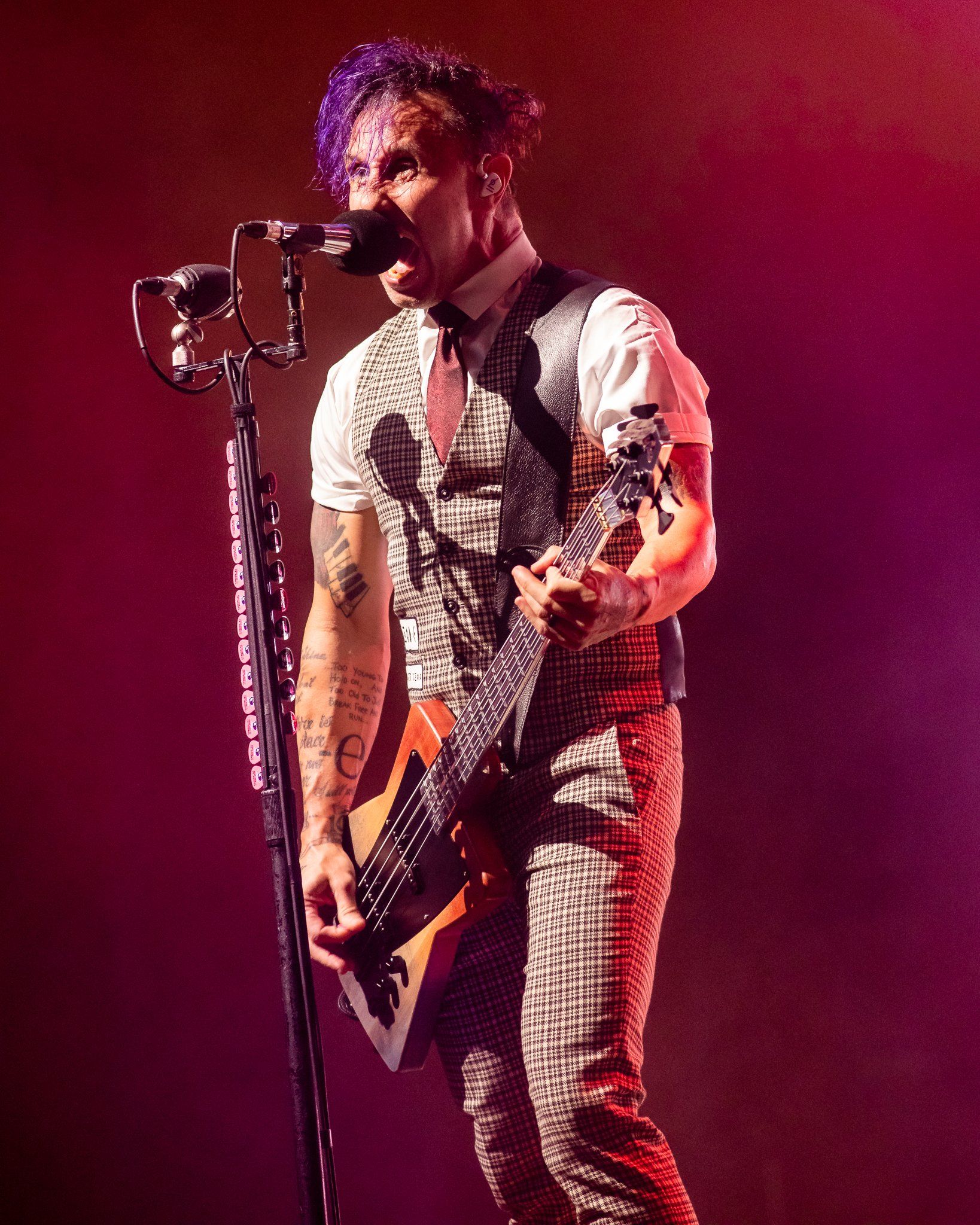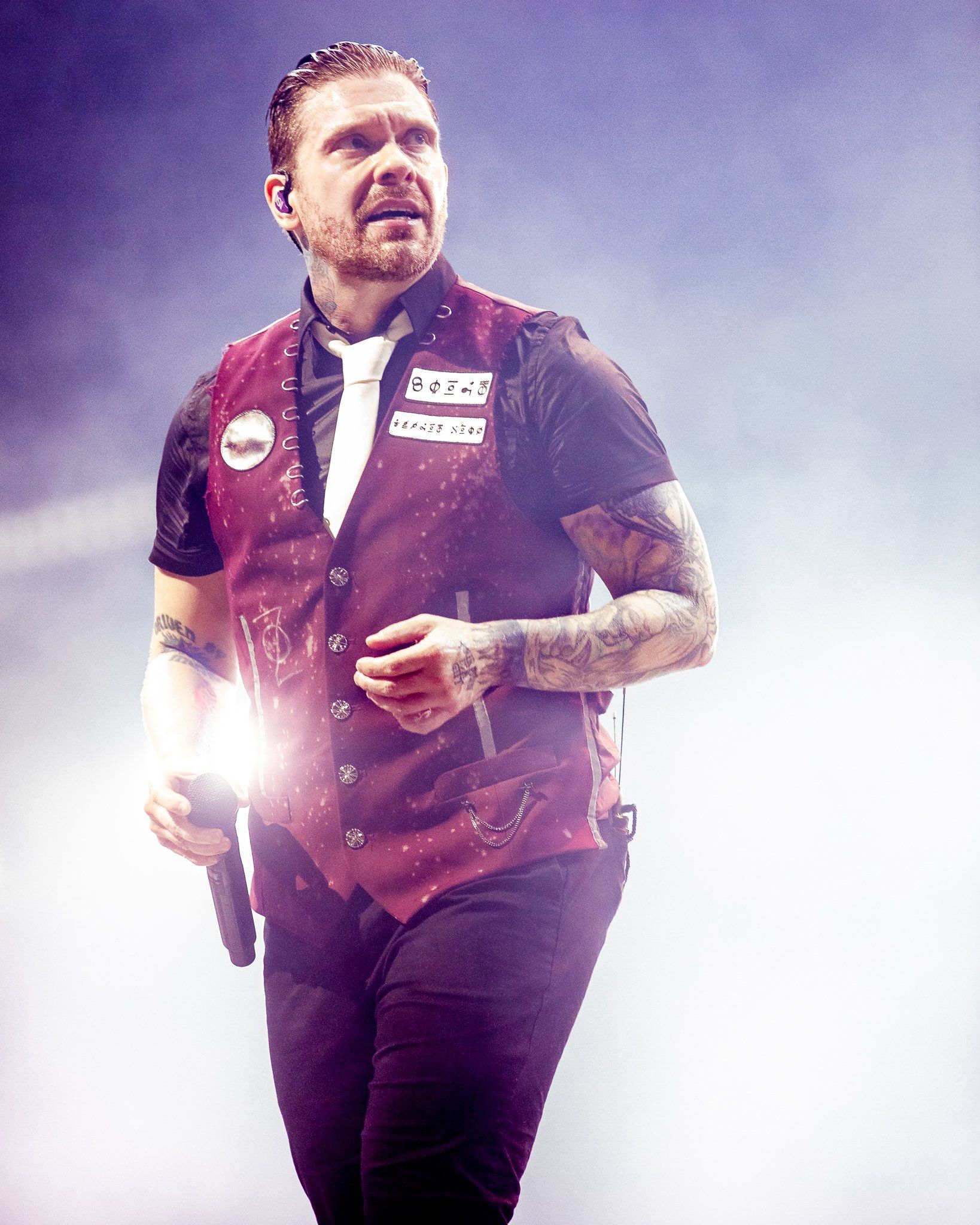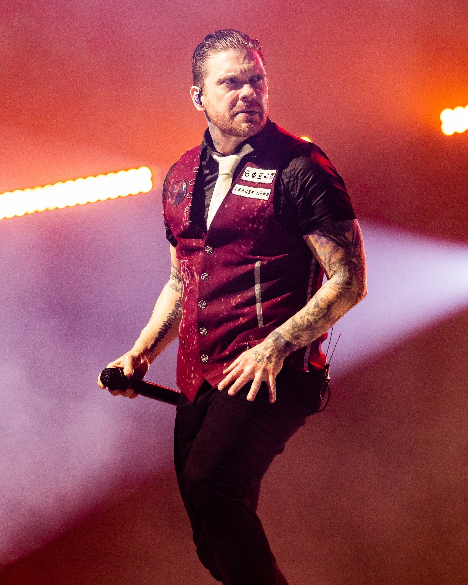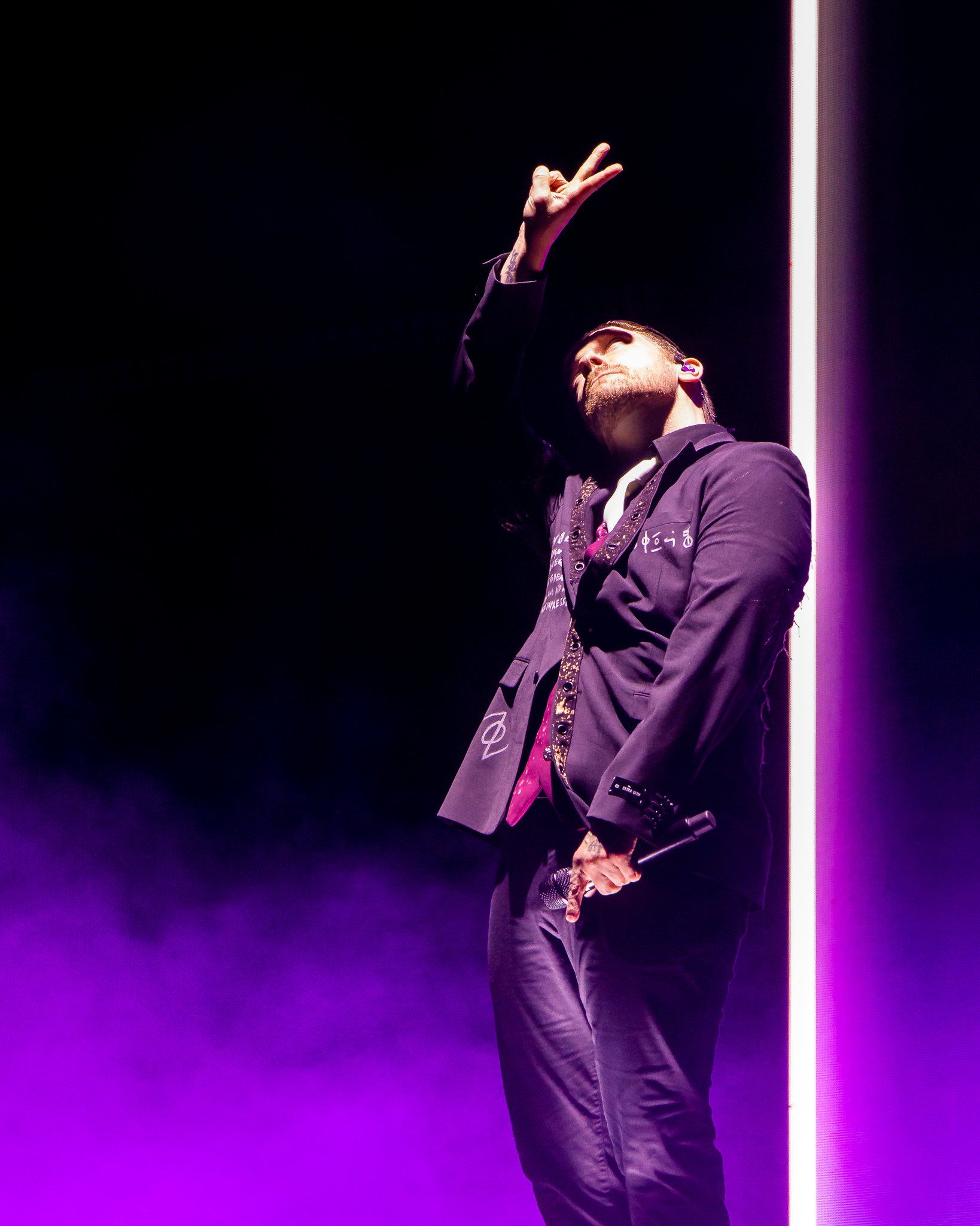 Shinedown took to the stage shortly past 9PM and their massive stage production slowly began to flicker to life as was used on the first leg of the tour.  Cryptic alien symbols flashed on the screen after a lengthy video detailing the band's pre and post pandemic adventures, suddenly an AI appeared and the Freddom Mortgage Pavilion was transported all at once to "Planet Zero" itself as the band walked out on stage to the roar of the packed amphitheater crowd.