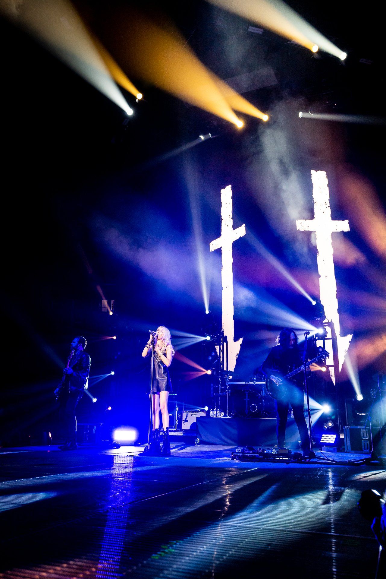 Taylor Momsen is a veteran artist at this point when it comes to live performances and the stage set up on 'The Revolution's Live Tour' is among the biggest the band has ever performed on. The increased space gave Momsen a lot of real-estate to perform in and allowed her to command the crowd as the true front woman she is with a masterful performance. Through out the band's 10 song set Momsen made her way down the thrust constantly, slid across a large metal section in the middle and even crawled along the floor at one point all while delivering impressive vocal performances. Supporting her were the incredible bandmates she has shared the stage with in The Pretty Reckless for the last few years including guitarist Ben Phillips who laid down multiple flawless guitar riffs during the set.