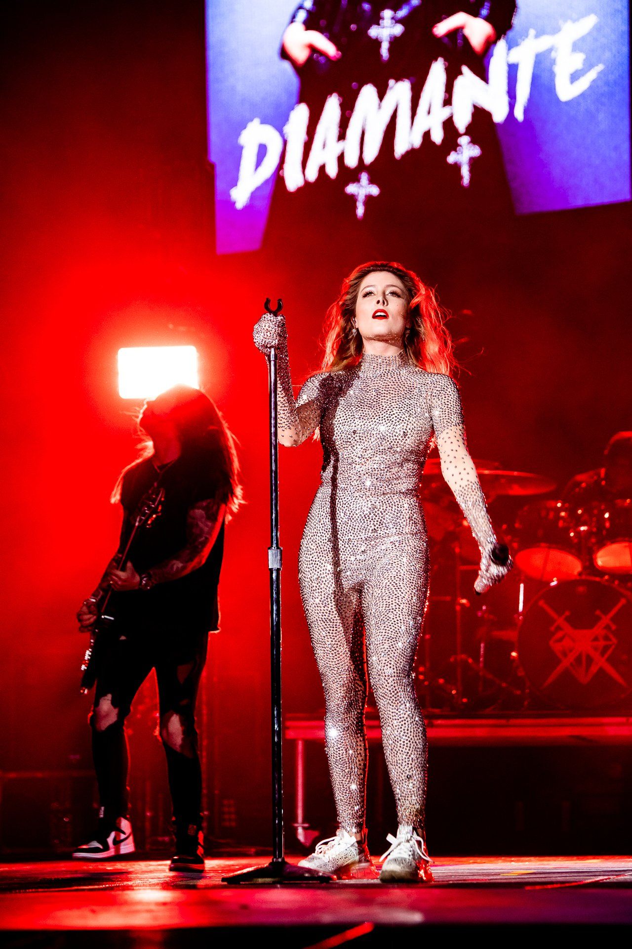 Joining Shinedown on 'The Revolution's Live Tour' were the established and increasingly popular special guest The Pretty Reckless helmed by Taylor Momsen and the relatively newcomer to the scene, Diamante. Both support artists shared and utilized the massive stage that Shinedown has constructed for this tour which gave them an incredible amount of production to work into their performance as well as usage of the massive thrust that cut the general admission crowd of the venue in half. Diamante was the first to take to the stage and did so with a flash as her diamond-esque jumpsuit burst to life with light as the spotlights illuminated her arrival in Hershey.
