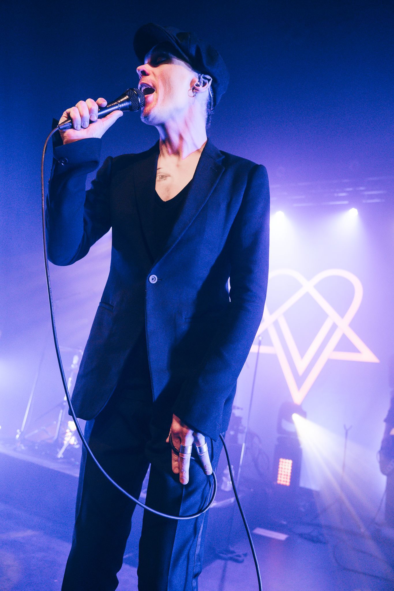 Ville Valo hit the stage just past 9PM as a light purple LED wash of lighting was cast around him and his touring band. Behind them a giant VV illuminated the sold out Theater of Living Arts in Philadelphia that further burst to life as a full fledged heartagram came to life as the show started. To no surprise Valo started with material from his recently released solo album 'Neon Noir.' The crowd burst to life with joy as Valo strutted to the microphone standing and began belting out the haunting lyrics of "Echolocate Your Love" to start the evening off. The anticipation of the crowd reached a fever pitched in the minutes to Valo's arrival to stage and by the end of the first song it had spilled over as the crowd roared with applause - however their excitement would go even higher as Valo and his band moved quickly into the HIM mainstay "The Funeral of Hearts" before dipping back into some new material with the title track, "Neon Noir."